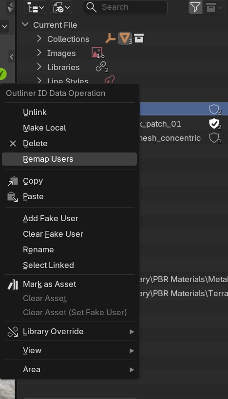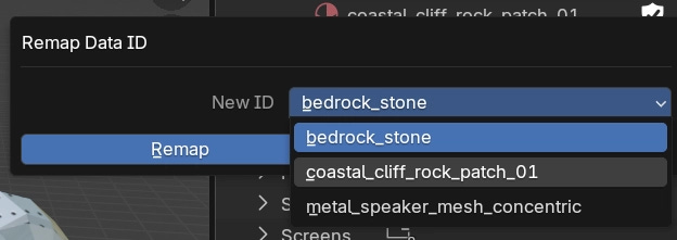 This same trick works for all data. Replace all uses of a node group. Replace all uses of a mesh.